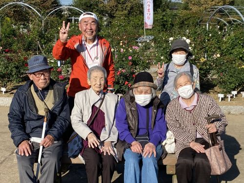 今回は利用者の皆さまからのご希望もあり、久しぶりに外出行事を再開。色とりどりのバラに囲まれ、