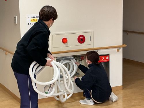 普段触れる機会の少ない設備ですが、「たくさんの利用者が生活していることを考え、真剣な眼差しで訓練を行いました」。