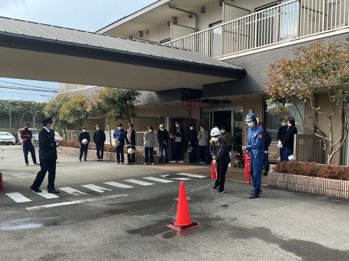 サポートハウスからの出火の想定で訓練を実地しました